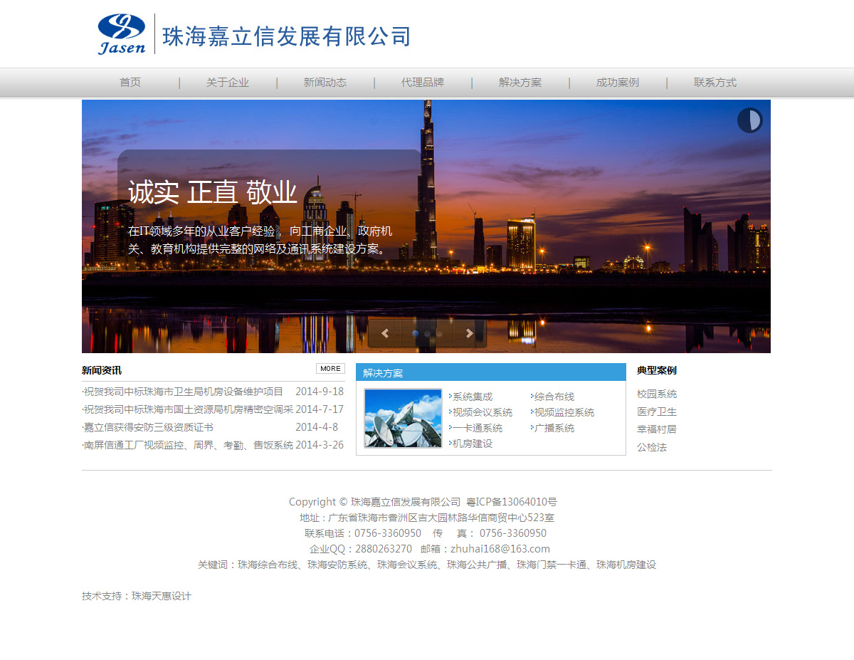 珠海嘉立信是一個最早從事弱電方面的專業公司,珠海網站建設具有一個專業工程師和施工隊伍,為各種系統集成應用提供更廣闊的領域,包括綜合布線、集團電話、管理系統、會議系統、公共廣播、門禁一卡通等。同時提供各種專業服務,包括工程顧問、系統設計、安裝、調試及維護等。是美國Molex、AVAYA綜合布線代理商,2009年榮獲Molex華南地區十佳認證安裝商,是國內知名品牌普天的代理商,具有多名認證工程師,完成了不少大型的布線項目。