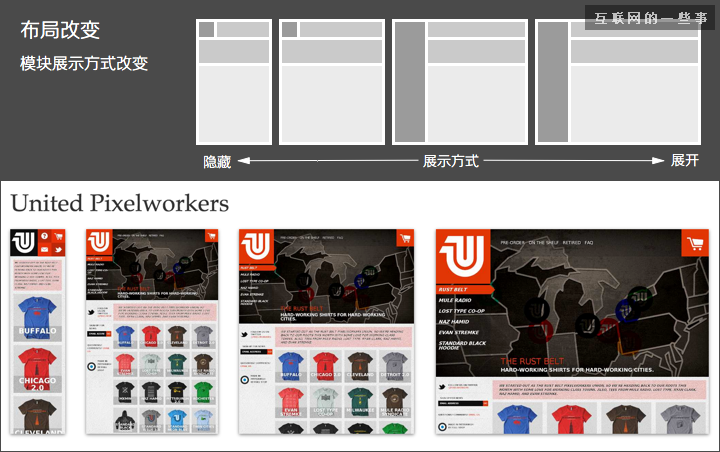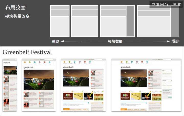 可切換的固定布局:同樣以像素作為頁面單位,參考主流設(shè)備尺寸,設(shè)計(jì)幾套不同寬度的布局。通過設(shè)別的屏幕尺寸或?yàn)g覽器寬度,選擇最合適的那套寬度布局;